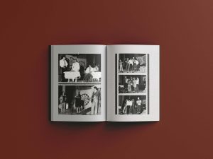Pored korice, moj zadatak bio je i uređivanje celokupnog knjižnog bloka, unutrašnjih strana koje su osmišljene kao niz foto kolaža od Monjinih fotografija. Crno-bele fotografije sa pozorišnih predstava, druženja, nastupa i svakodnevnog života složene su u kolaže koji dišu kao sećanje, fragmenti prošlosti postavljeni jedan pored drugog, sa pozadinama u toplim, zemljanim tonovima koji daju osećaj starog albuma pronađenog na tavanu. Rukopis koji se provlači kroz stranice nije dekoracija on je Monjin glas koji i dalje priča.